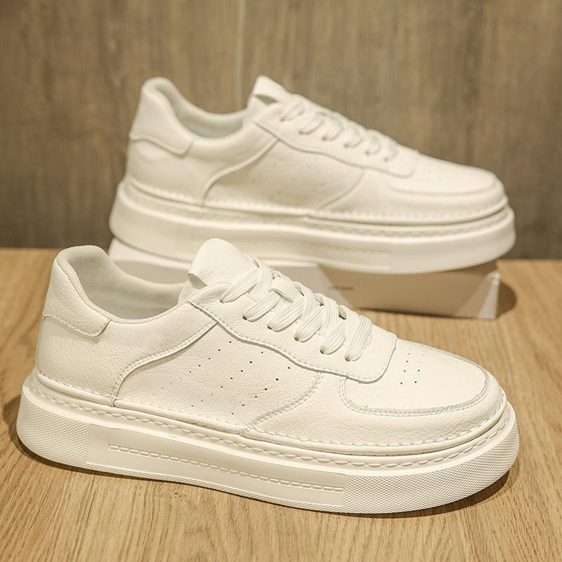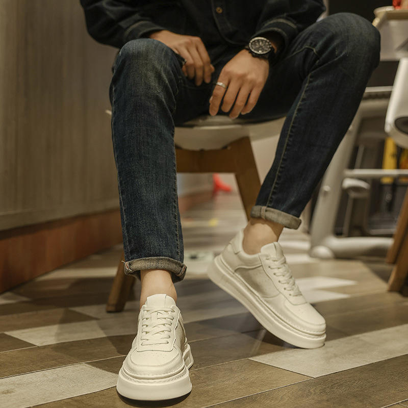 รองเท้าลำลองผู้ชายแบบใหม่ รองเท้าผ้าใบสีขาวคุณภาพสูง น้ำหนักเบา สวมใส่สบาย ทันสมัย พื้นหนาเสริมความสูง รองเท้าสเก็ต