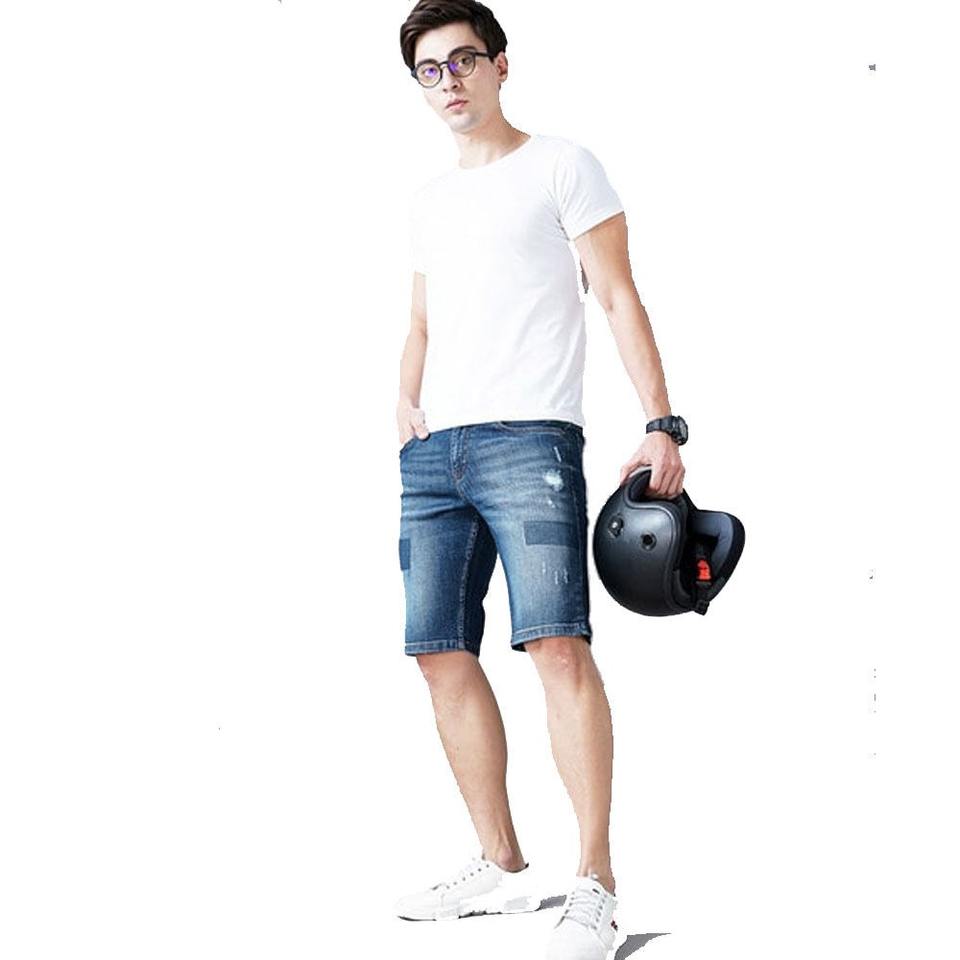กางเกงยีนส์ขาสั้นผู้ชายแบบสบายๆ สีน้ำเงิน ผ้าฝ้าย 100% ระบายอากาศได้ดี กันน้ำ แฟชั่นสตรีทแวร์