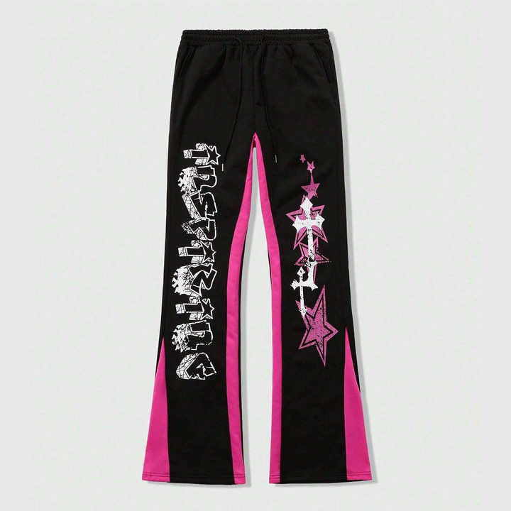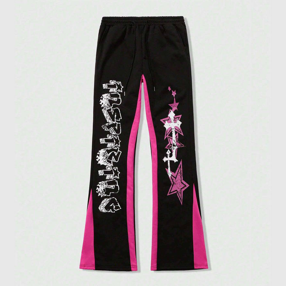 กางเกงจ็อกเกอร์ทรงบานผ้าฝ้ายคุณภาพสูงสำหรับผู้ชายรุ่นใหม่ แต่งลายปะติด ขอบเอวยางยืด ทรงขาบานซ้อนกัน