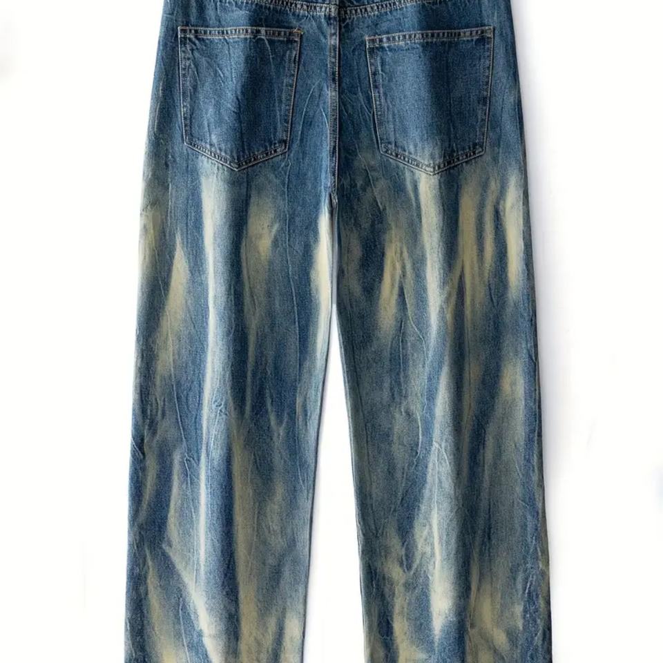 กางเกงยีนส์ผู้ชายแบบใหม่ - ลายย้อมสีไล่ระดับสีน้ำเงินเบจ สไตล์ย้อนยุค เหมาะสำหรับเทรนด์แฟชั่นย้อนยุค