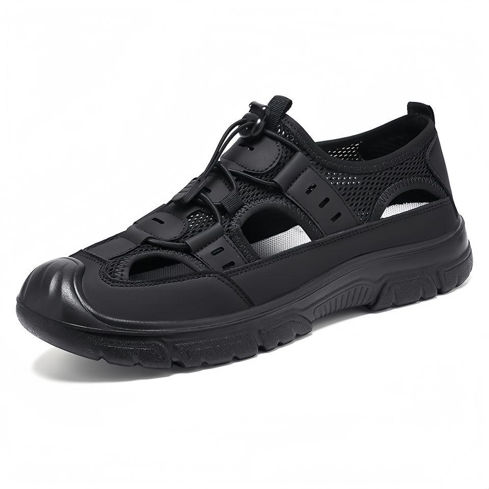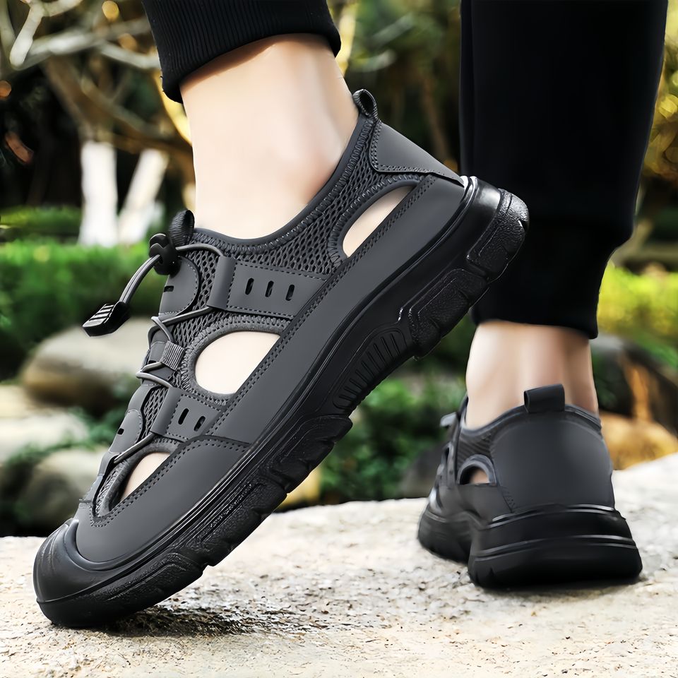 รองเท้าเดินชายหาดแบบลำลองสำหรับผู้ชายใหม่รองเท้าพื้นรองเท้าตาข่ายระบายอากาศน้ำหนักเบากันลื่น