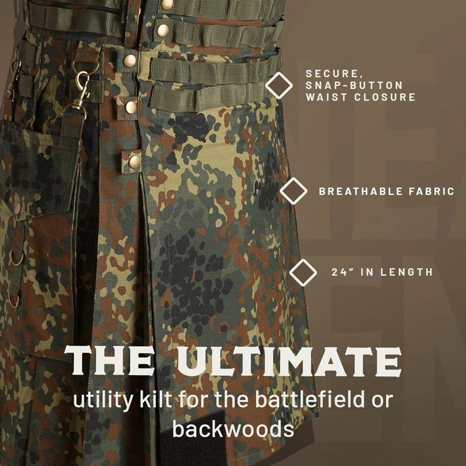 กางเกงคิลท์ผู้ชายแบบใหม่ ลายพราง Woodland ผ้าฝ้ายทนทาน มีกระเป๋าหลายช่อง รุ่น 2026