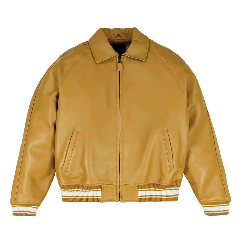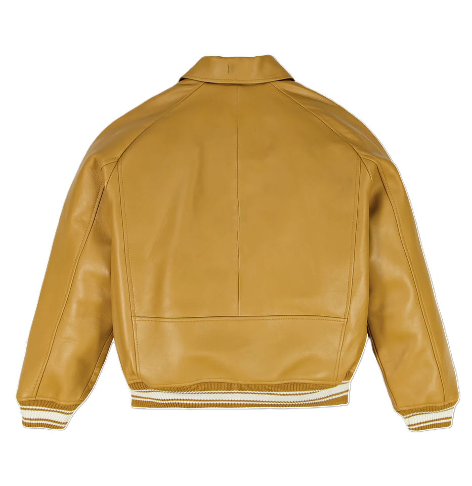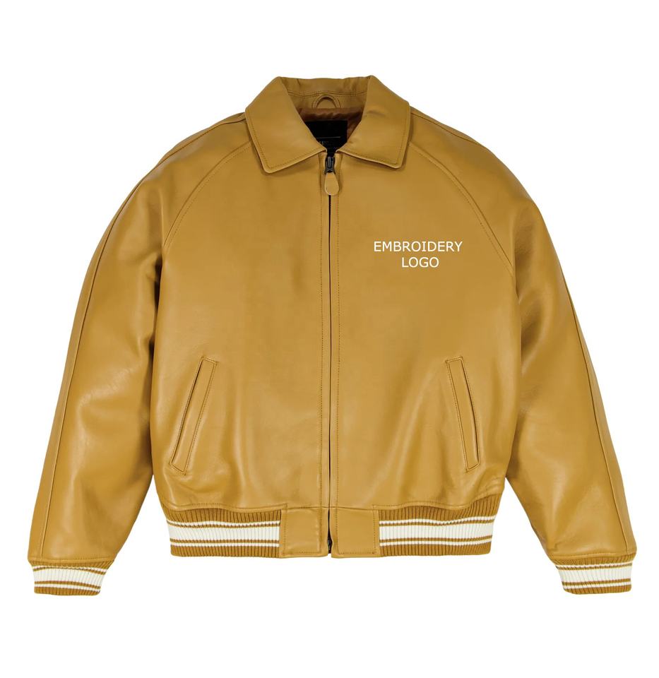 แจ็คเก็ตหนังผู้ชายแบบใหม่ ระบายอากาศได้ดี เป็นมิตรกับสิ่งแวดล้อม ปักโลโก้ ทรงบอมเบอร์ ซิปแบบวาร์ซิตี้ ไซส์พลัส ผลิตตามแบบ OEM ผ้ายีนส์สำเร็จรูป สไตล์ลำลอง