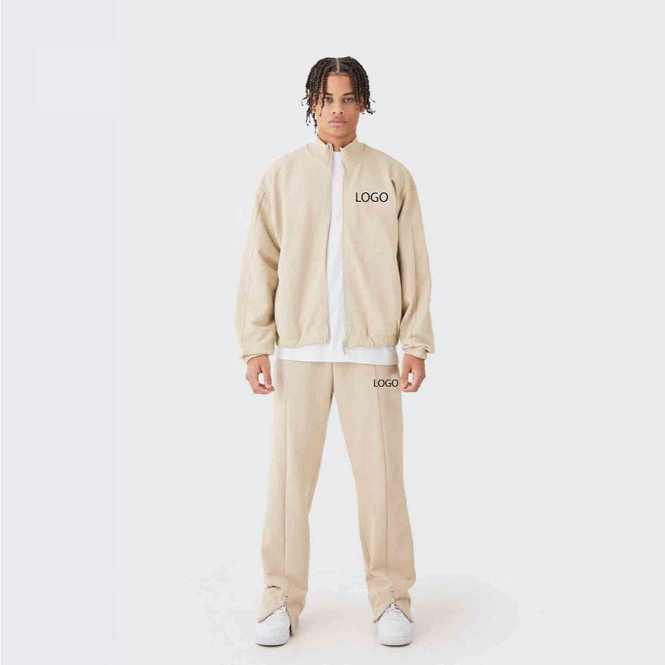ชุดวอร์มกางเกงโอเวอร์ไซส์สำหรับผู้ชายชุดออกกำลังกายแบบมีซิปและกางเกงวอร์มลำลองมีโลโก้ออกแบบได้ตามต้องการ