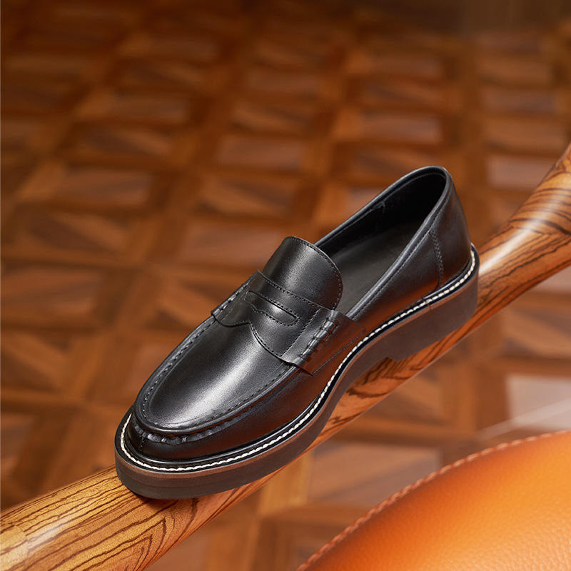 รองเท้าโลฟเฟอร์ผู้ชายแบบใหม่ เพิ่มความสูง สำหรับฤดูใบไม้ร่วง คุณภาพสูง หนังวัวแท้ สไตล์ลำลอง ระบายอากาศได้ดี กันน้ำ น้ำหนักเบา
