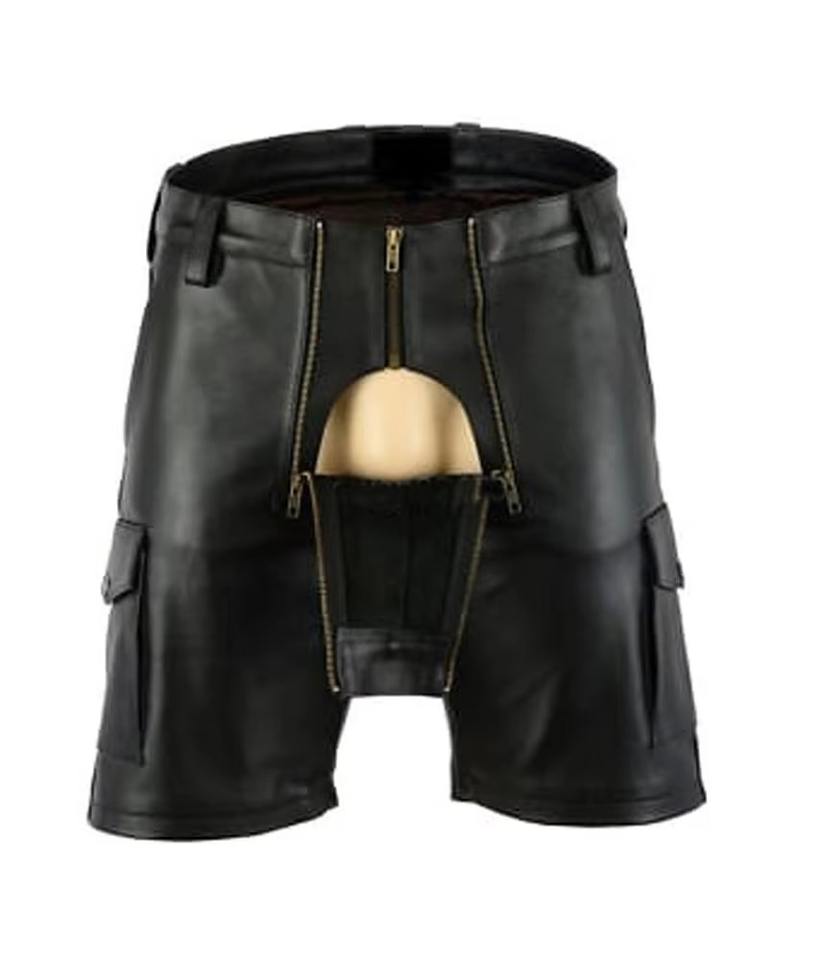 กางเกงหนัง PU ผู้ชายสีพื้น กระเป๋าใหญ่ แต่งซิปคู่ สไตล์พังก์ลำลอง เซ็กซี่ สำหรับใส่ไปคลับ สไตล์พังก์