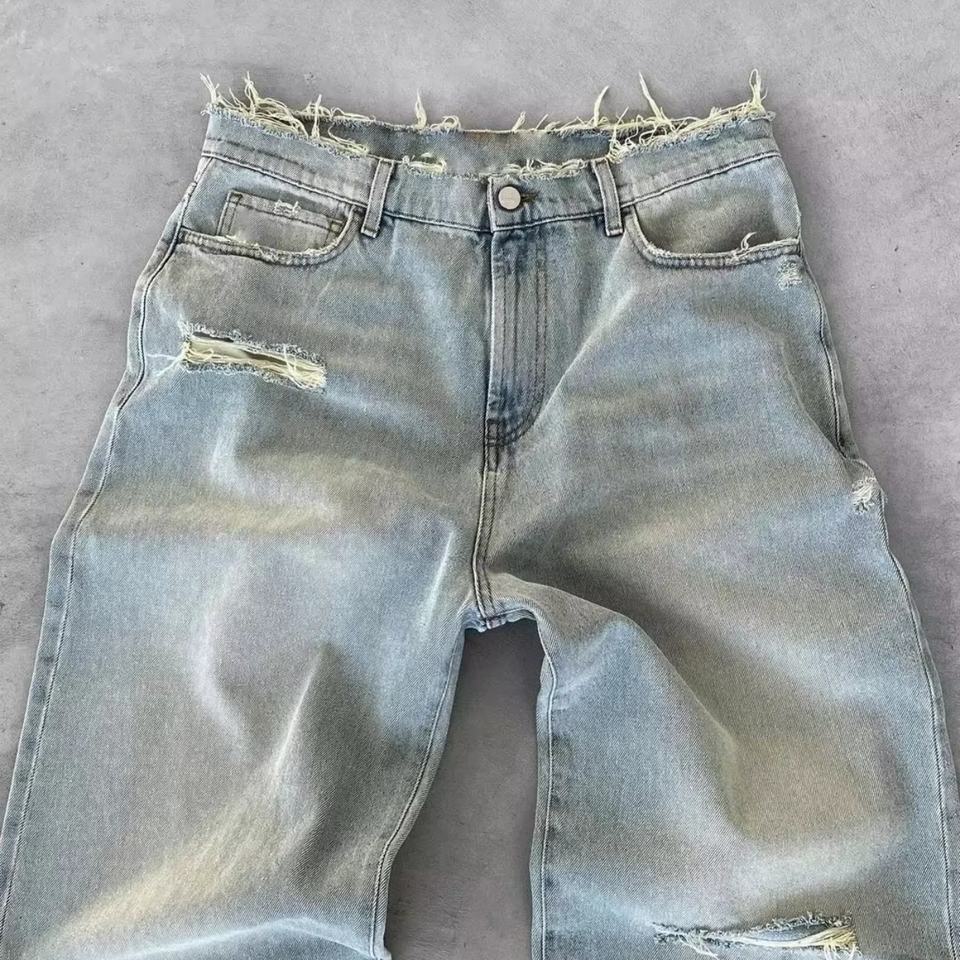 กางเกงยีนส์ผู้ชายสไตล์เรโทรแบบใหม่ - ลุคฟอกสีอ่อน เหมาะสำหรับแฟชั่นสตรีทแวร์ Y2K และเทรนด์แฟชั่นลำลอง