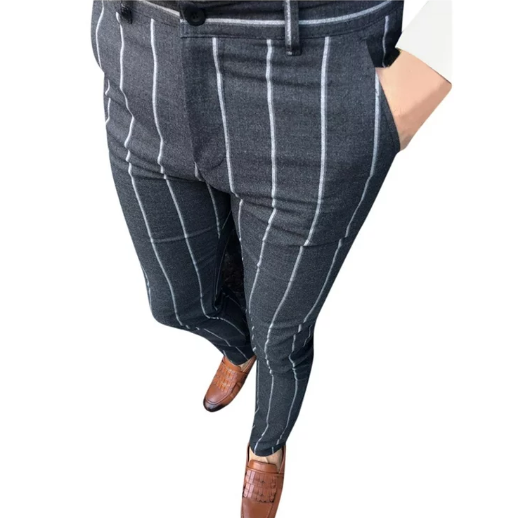 กางเกงขายาวทรงสลิมฟิตลายทางสำหรับผู้ชาย แบบทางการและลำลองสำหรับใส่ทำงาน ดีไซน์ทันสมัย รับผลิตแบบ OEM ODM
