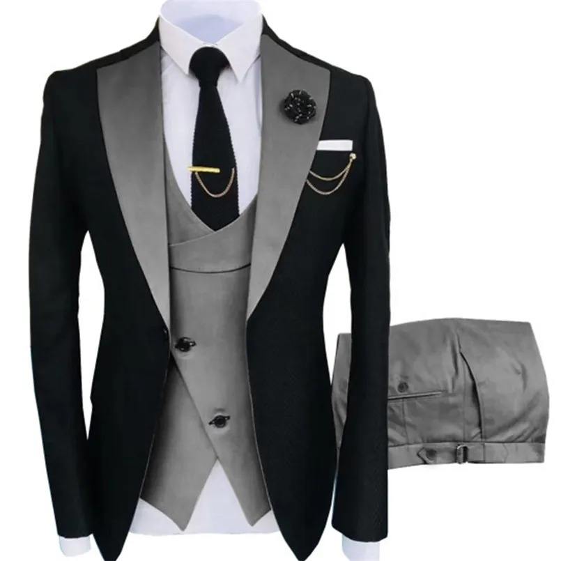 ชุดสูท3ชิ้นสำหรับเจ้าบ่าวชุดสูทธุรกิจเข้ารูปผู้ชาย
