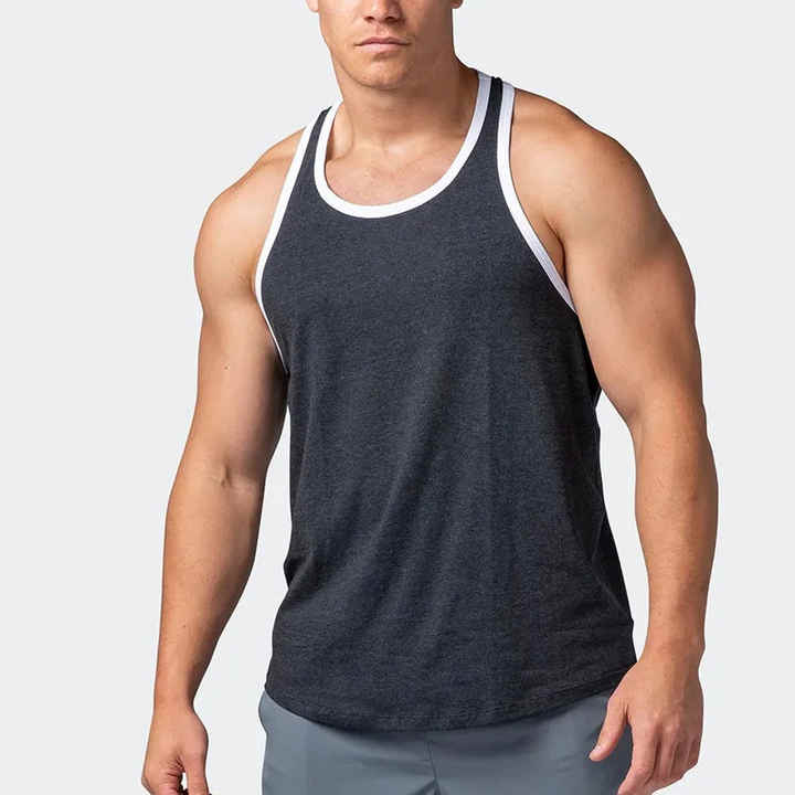 New Men's Sports Singlets Gym Stringer Cotton Fiber Fitness Heat-Transfer Printing Bodybuilding Quick Dry Breathable High Street