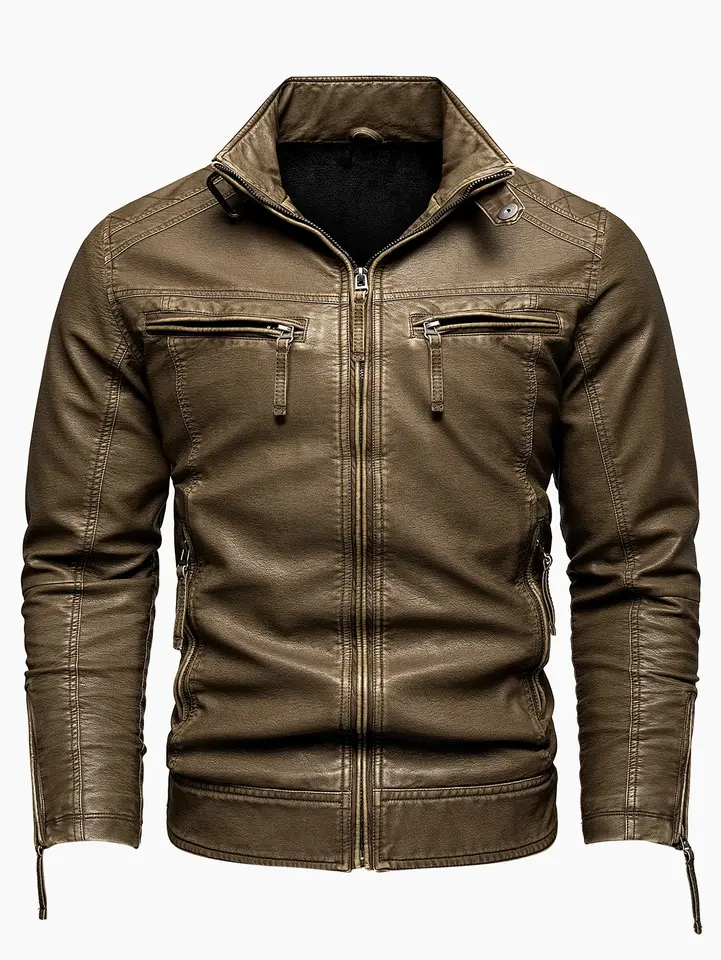 เสื้อแจ็คเก็ตหนังผู้ชายสไตล์เกาหลีสำหรับฤดูใบไม้ผลิและฤดูใบไม้ร่วง เสื้อคลุมหนังลำลองสำหรับขี่มอเตอร์ไซค์ เสื้อคลุมแฟชั่นลำลองสำหรับผู้ชาย