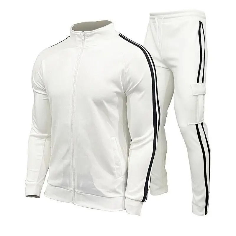 ใหม่ชุด2ชิ้นเสื้อคาร์ดิแกนคอตั้งชุดเล่นกีฬาสำหรับผู้ชายชุดเล่นกีฬาเข้ารูปลำลองสำหรับใส่วิ่งฤดูใบไม้ผลิและฤดูใบไม้ร่วง