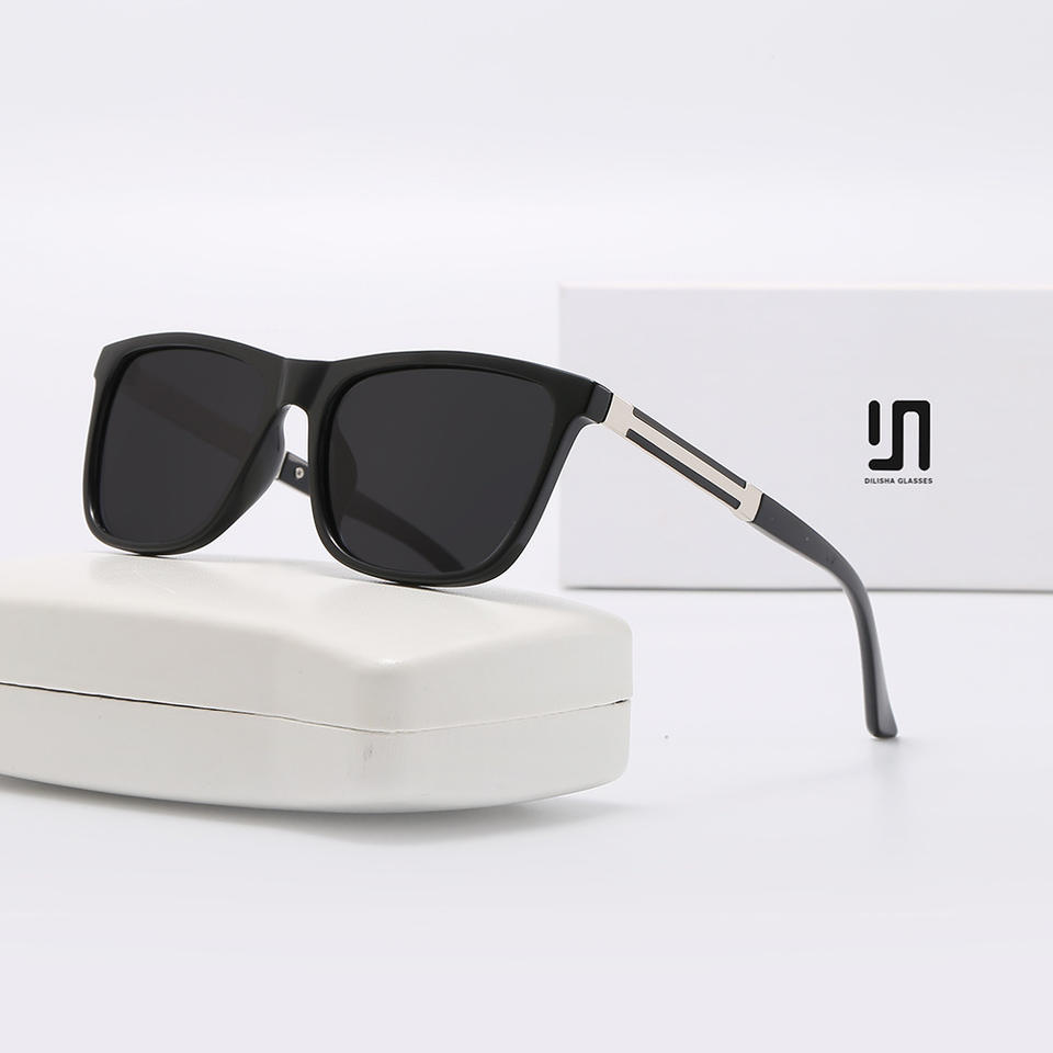 แว่นกันแดดทรงสี่เหลี่ยมสำหรับผู้ชายรุ่นใหม่สีดำโพลาไรซ์ UV400 กรอบพลาสติกและโลหะสำหรับการขับขี่ป้องกันแสงแดด