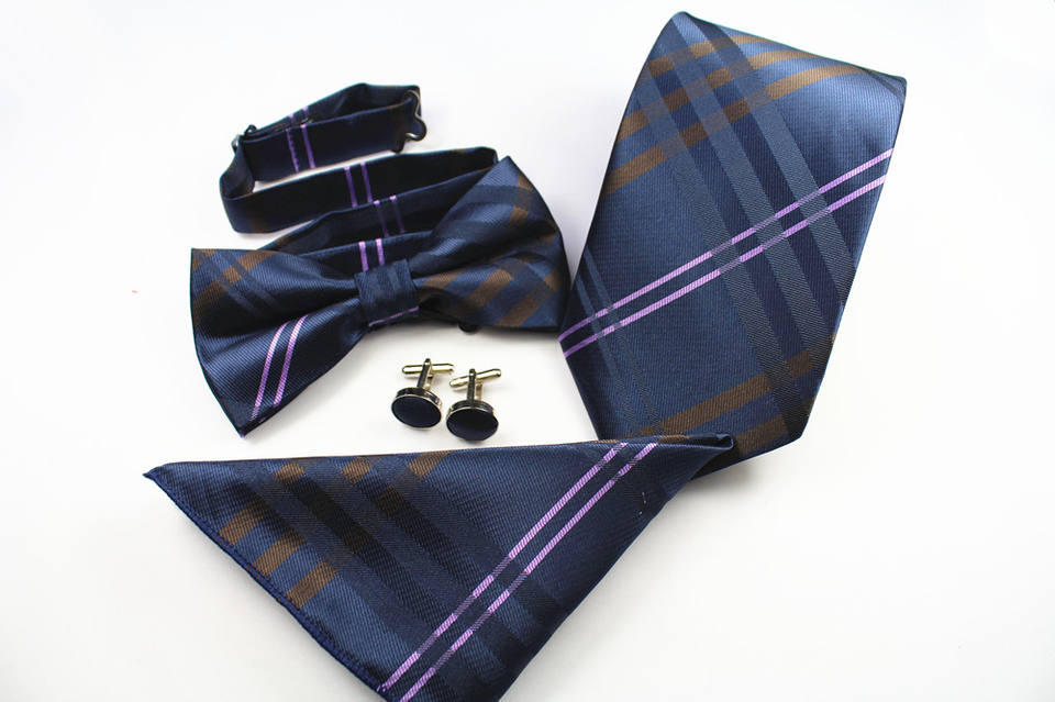 ชุดกระดุมข้อมือผ้าเช็ดหน้าผูกโบว์หูกระต่ายของผู้ชายใหม่ชุดเนคไทผ้าไหมแจ็คการ์ดสีดำสีน้ำเงินหรูหราชุดงานแต่งงานงานปาร์ตี้