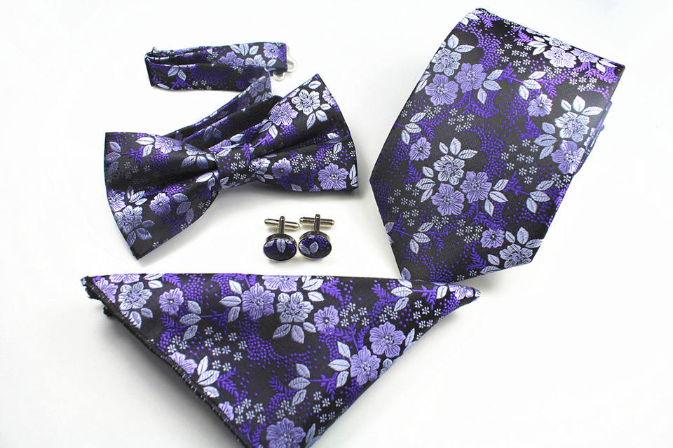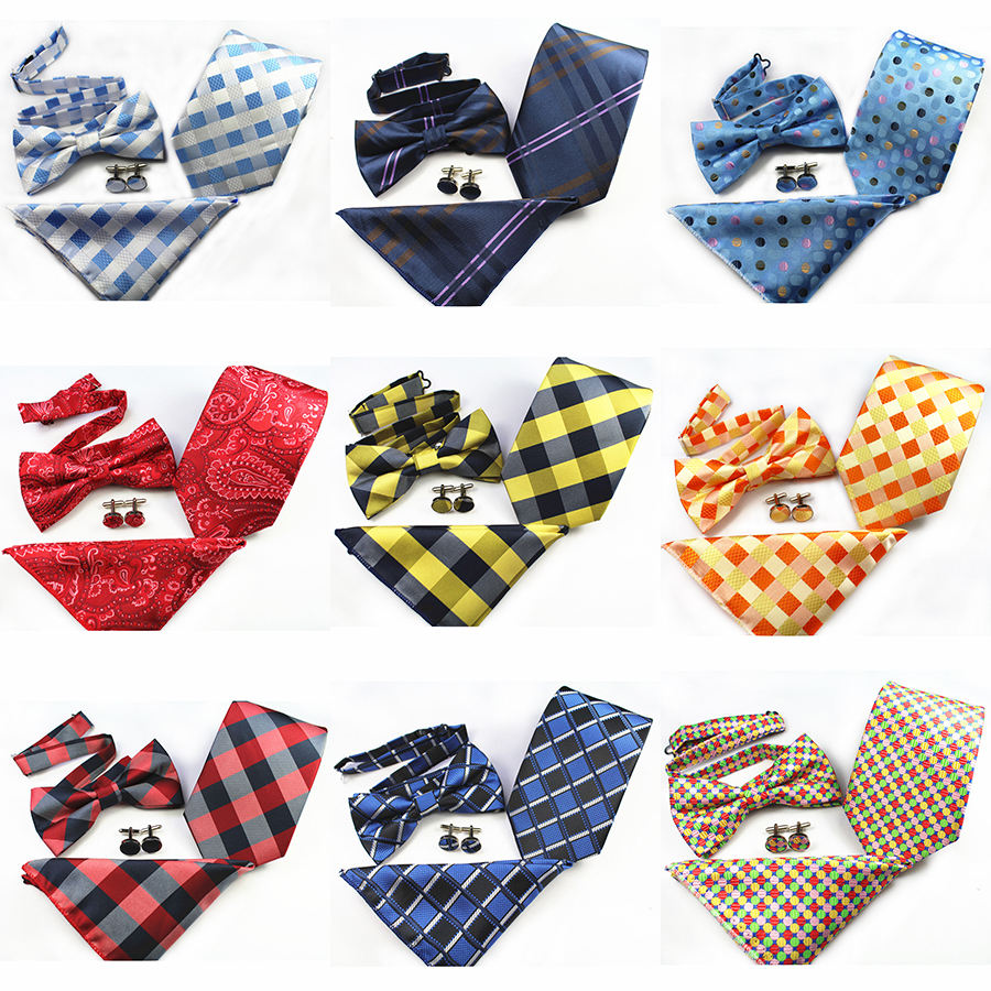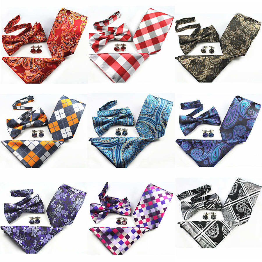 ชุดกระดุมข้อมือผ้าเช็ดหน้าผูกโบว์หูกระต่ายของผู้ชายใหม่ชุดเนคไทผ้าไหมแจ็คการ์ดสีดำสีน้ำเงินหรูหราชุดงานแต่งงานงานปาร์ตี้