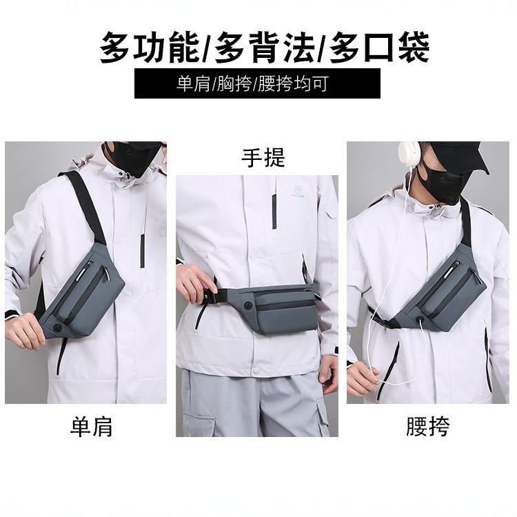 กระเป๋าคาดเอวผู้ชายแบบใหม่ กระเป๋าคาดอก กระเป๋าสะพายไหล่ ความจุขนาดใหญ่ กันน้ำ สีพื้น หลายชั้น สำหรับธุรกิจและการเดินทาง ฤดูใบไม้ผลิ 2025