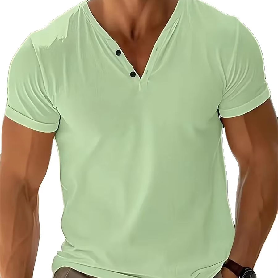 เสื้อทีเชิ๊ตผู้ชายผ้าแคนวาสแบบกระดุมเปิดใหม่สำหรับเสื้อโปโลแขนสั้นสีพื้นกันยับสำหรับเสื้อโปโลทรงหลวมฤดูร้อน