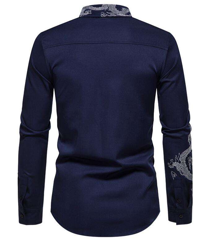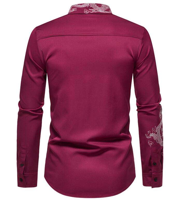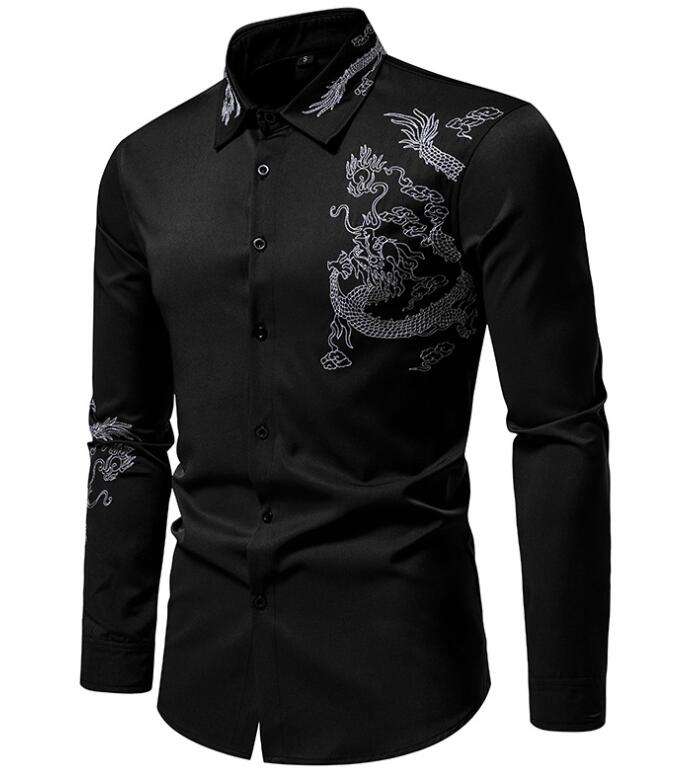 ชุดเดรสแฟชั่นแขนยาวสำหรับผู้ชาย, เสื้อปักลายมังกรทรงสลิมฟิตเสื้อสำหรับไปงานปาร์ตี้