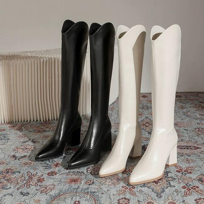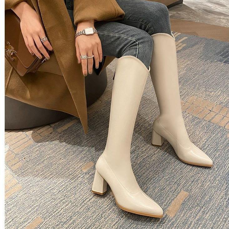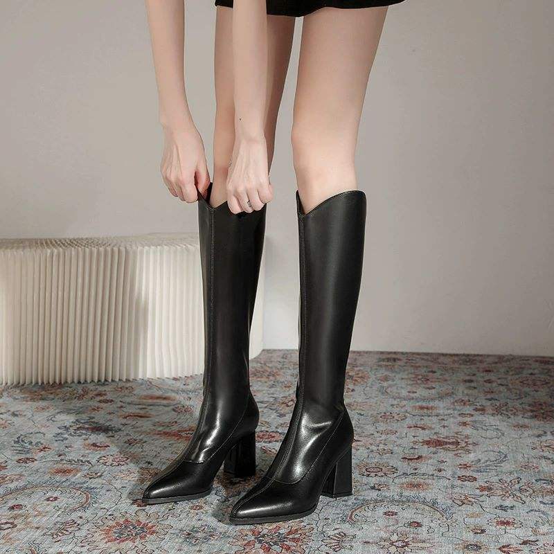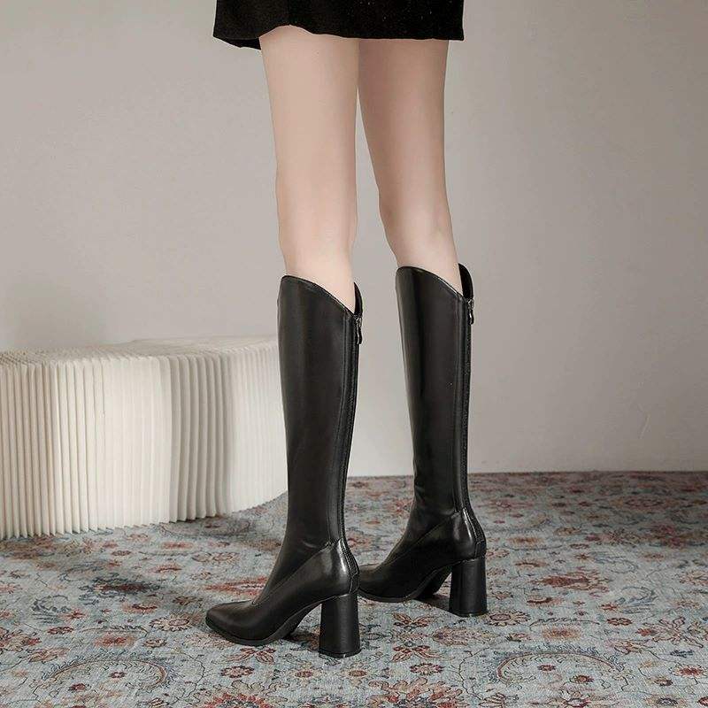 รองเท้าบูทแฟชั่นส้นกลางแบบใหม่สำหรับผู้หญิง รองเท้าบูทแขนยาวสำหรับฤดูหนาว รองเท้าบูทสั้นทรงโกธิคแบบหนา