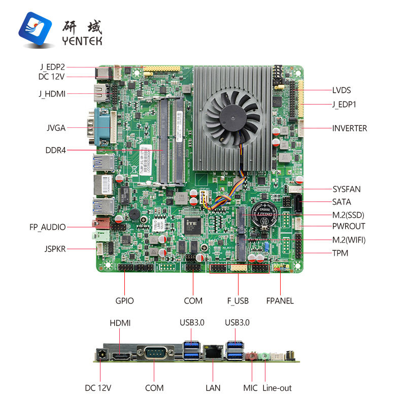เมนบอร์ดมินิไอทีเอ็กซ์แบบตั้งโต๊ะใหม่ รองรับ DDR4 2x SATA Intel I3-7100U 2.4GHz ดูอัลคอร์ 2 พอร์ต COM LAN VGA LVDS EDP USB รับประกัน 3 ปี
