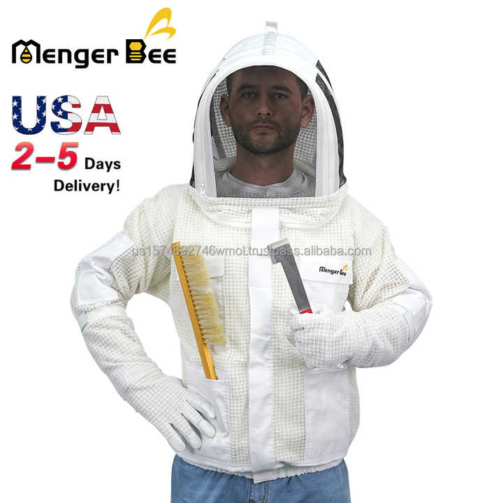 เสื้อแจ็กเก็ตผึ้งแบบใหม่เสื้อแจ็กเก็ตผ้าฝ้ายระบายอากาศพร้อมถุงมือกันน้ำและเครื่องมือผ้าเพื่อความปลอดภัยสำหรับผึ้ง