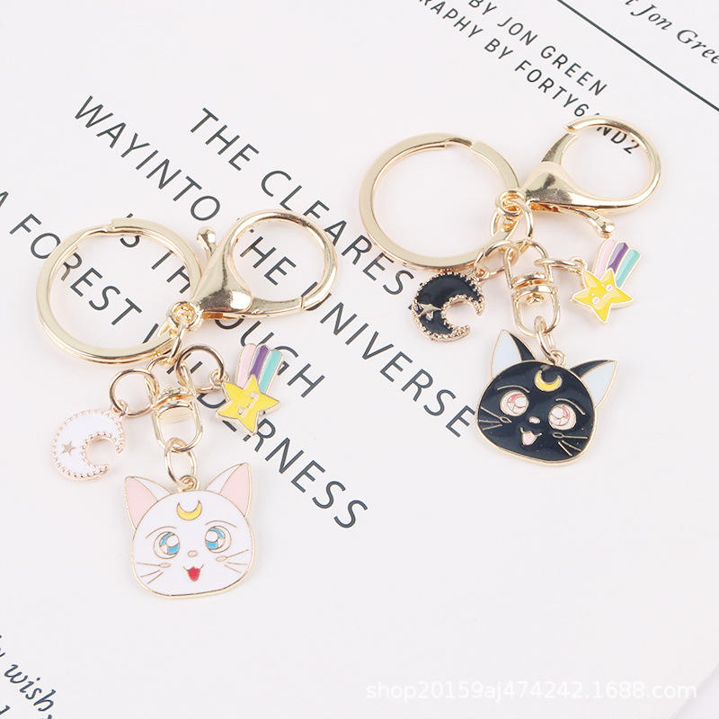 พวงกุญแจรถโลหะผสมรูปดวงจันทร์ขนาดเล็กพร้อมจี้โลหะรูปทรงดาวสำหรับตกแต่งในแบบของตกแต่งกระเป๋าแบบแขวน