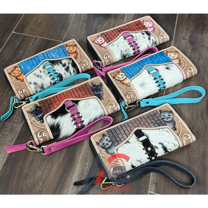 กระเป๋าสตางค์คล้องมือหนังวัวแท้ทำมือ