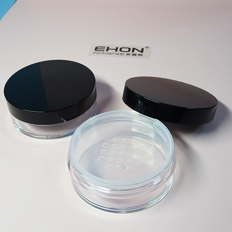รุ่นใหม่แววพลาสติกสองชั้นฉีดสีแสตมป์ร้อนพิมพ์เครื่องสำอางขวดผงหลวม