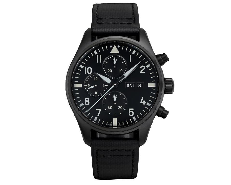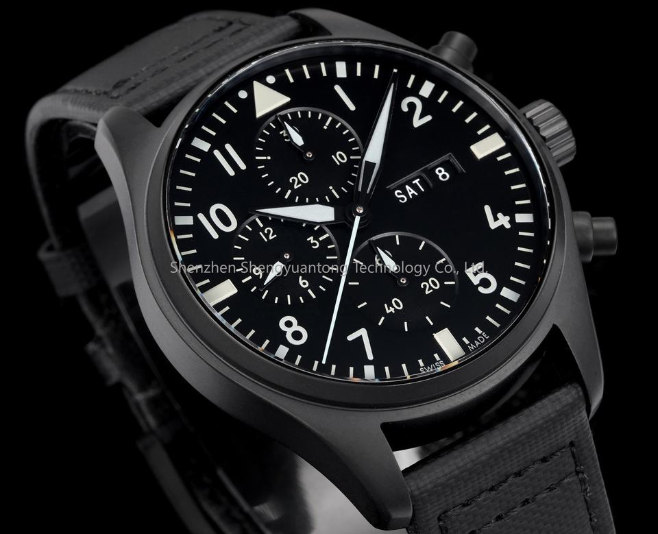 รุ่นใหม่นักบินชาวโปรตุเกสชาฟเฮาเซ่น 388108 หน้าปัดสีดำนาฬิกากระจกแซฟไฟร์สำหรับผู้ชายนาฬิกาจักรกล