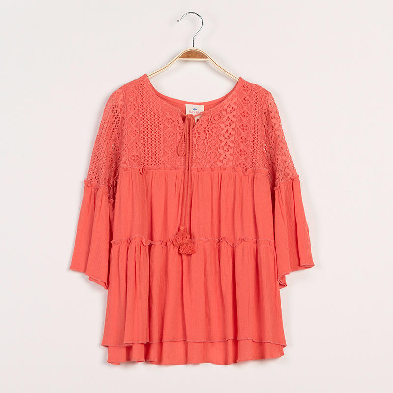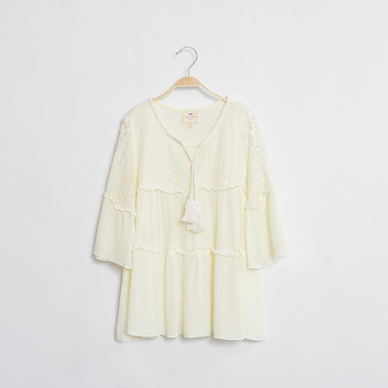 เสื้อลูกไม้คอวีสำหรับเด็กผู้หญิง แบรนด์ Made Branded Company Name ล็อตสต็อก