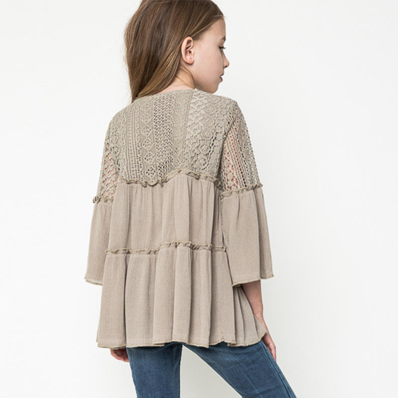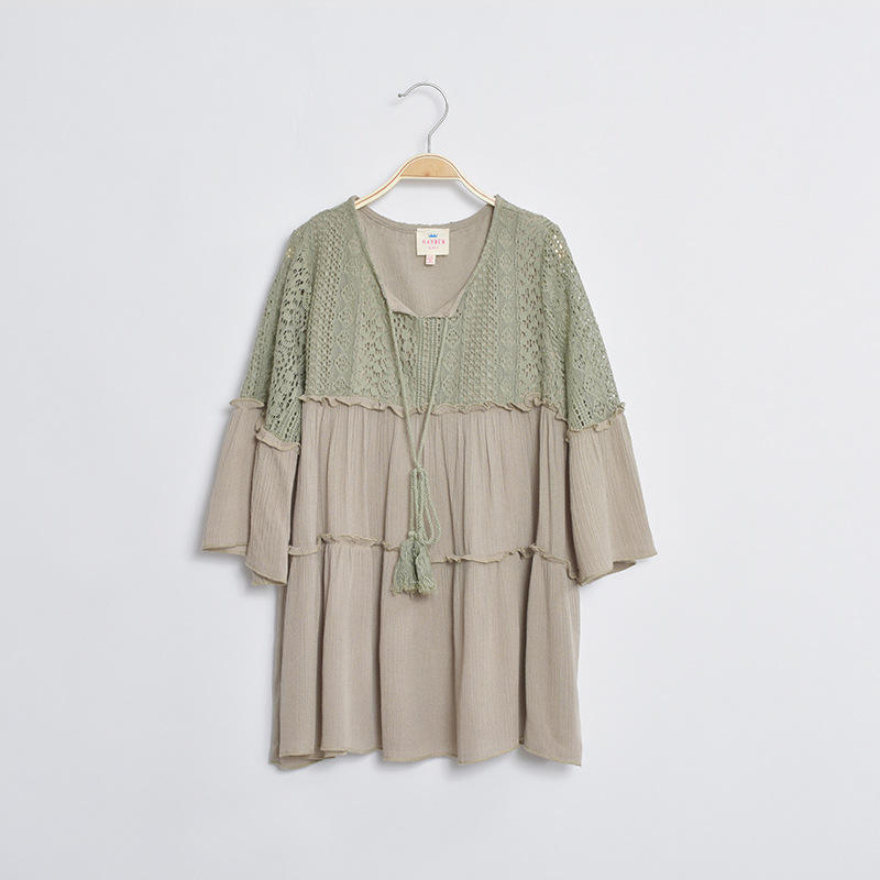 ชื่อ:เสื้อลูกไม้คอวีสำหรับเด็กผู้หญิง แบรนด์ Made Branded Company Name ล็อตสต็อก