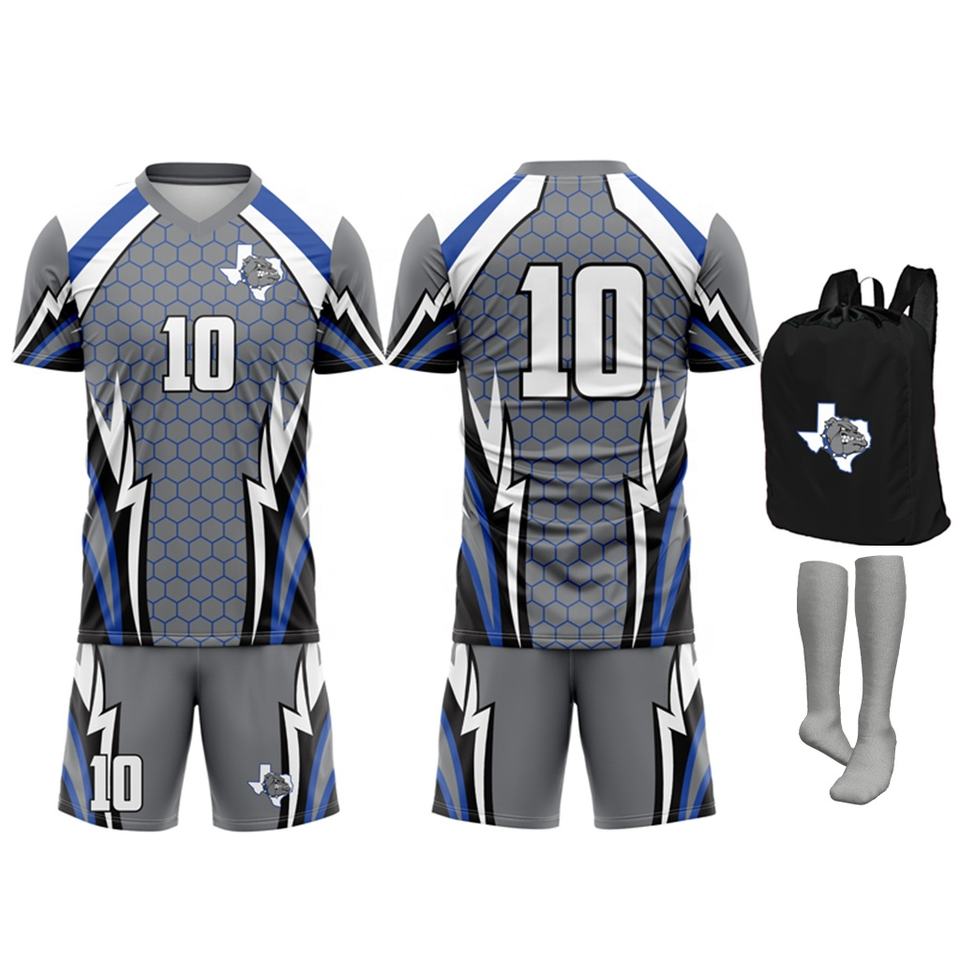 ชุดฟุตบอลแบบใหม่ คุณภาพสูง เนื้อผ้าระบายอากาศได้ดี ยืดหยุ่นได้ แขนสั้น สกรีนโลโก้ได้ตามต้องการ พิมพ์ลายดิจิทัล โพลีเอสเตอร์ 100% สำหรับผู้ชาย