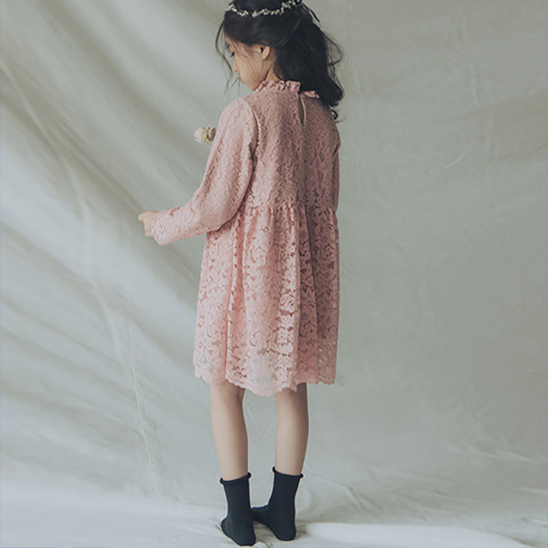 ตลาดเสื้อผ้าขายส่งรุ่นใหม่ ชุดเดรสลูกไม้สีชมพูสำหรับเด็กผู้หญิงจีน สำหรับงานปาร์ตี้ เสื้อผ้าเด็ก ช้อปปิ้งออนไลน์