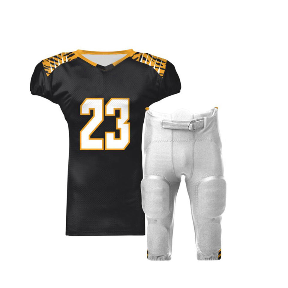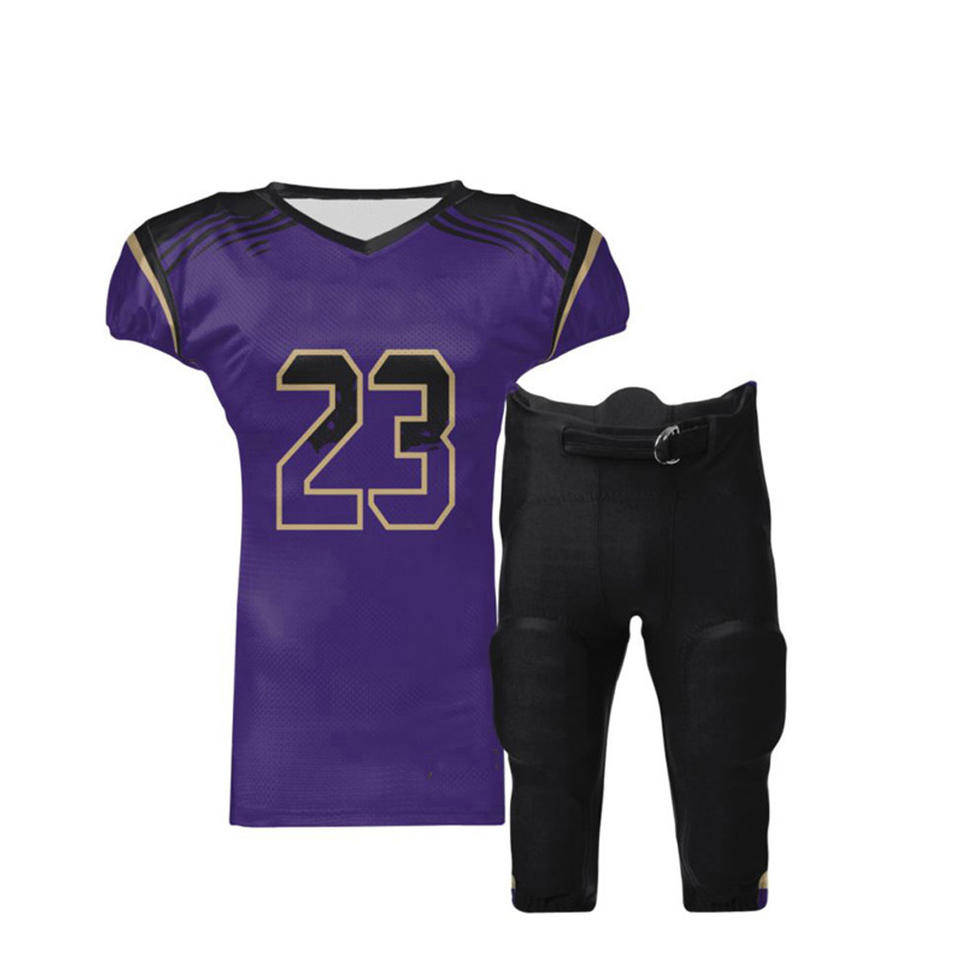 ชุดยูนิฟอร์มอเมริกันฟุตบอลแบบใหม่ของแท้จากโรงงาน ดีไซน์ทันสมัย ผ้าคุณภาพพรีเมียม พิมพ์ลายแบบซับลิเมชั่น ชุดยูนิฟอร์มฟุตบอลคุณภาพสูง