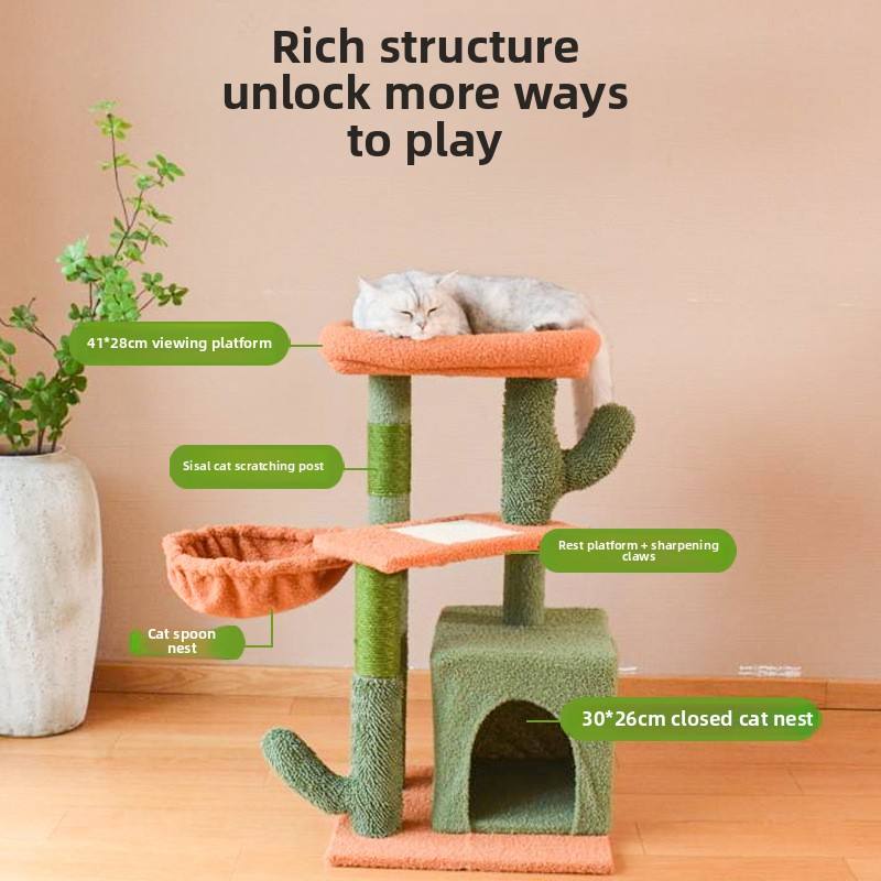 กรอบรังทรงหอคอยแมวแคคตัสแบบบูรณาการสำหรับลูกแมวขนาดเล็กวัสดุป่านศรนารายณ์ทนทานใหม่ล่าสุด
