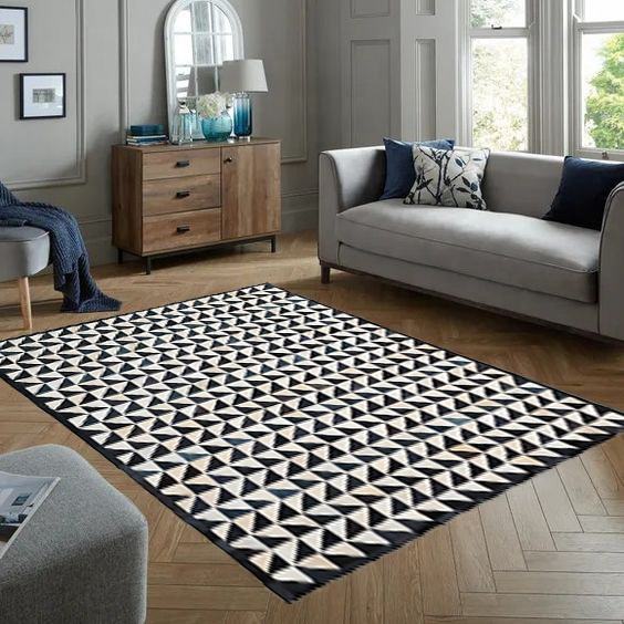 พรมหนังวัวงานปะติดสีขาวและสีดำทำด้วยมือสุดหรูพรมหนังแท้สำหรับตกแต่ง