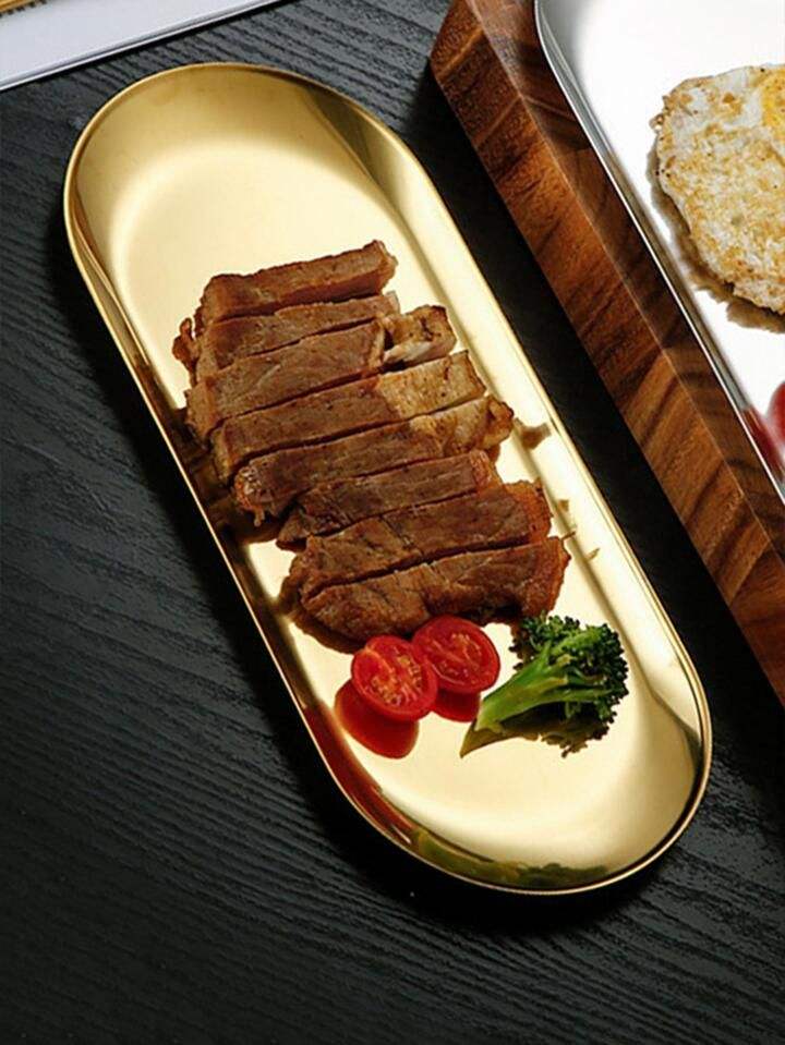 ใหม่ถาดสแตนเลสทรงรีและทรงกลมสำหรับงานหัตถกรรมถาดเงินพร้อมด้ามจับทรงสี่เหลี่ยมผืนผ้าและทรงสี่เหลี่ยม