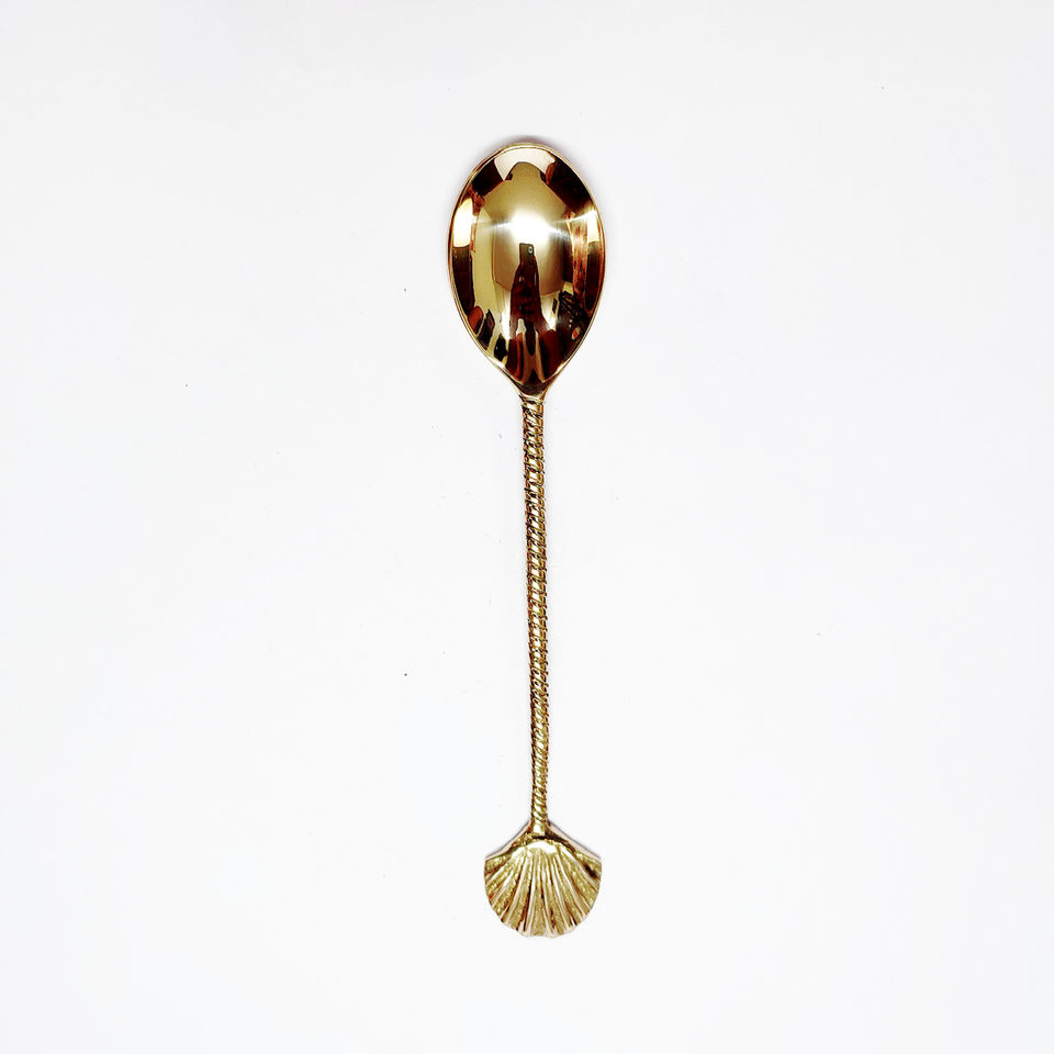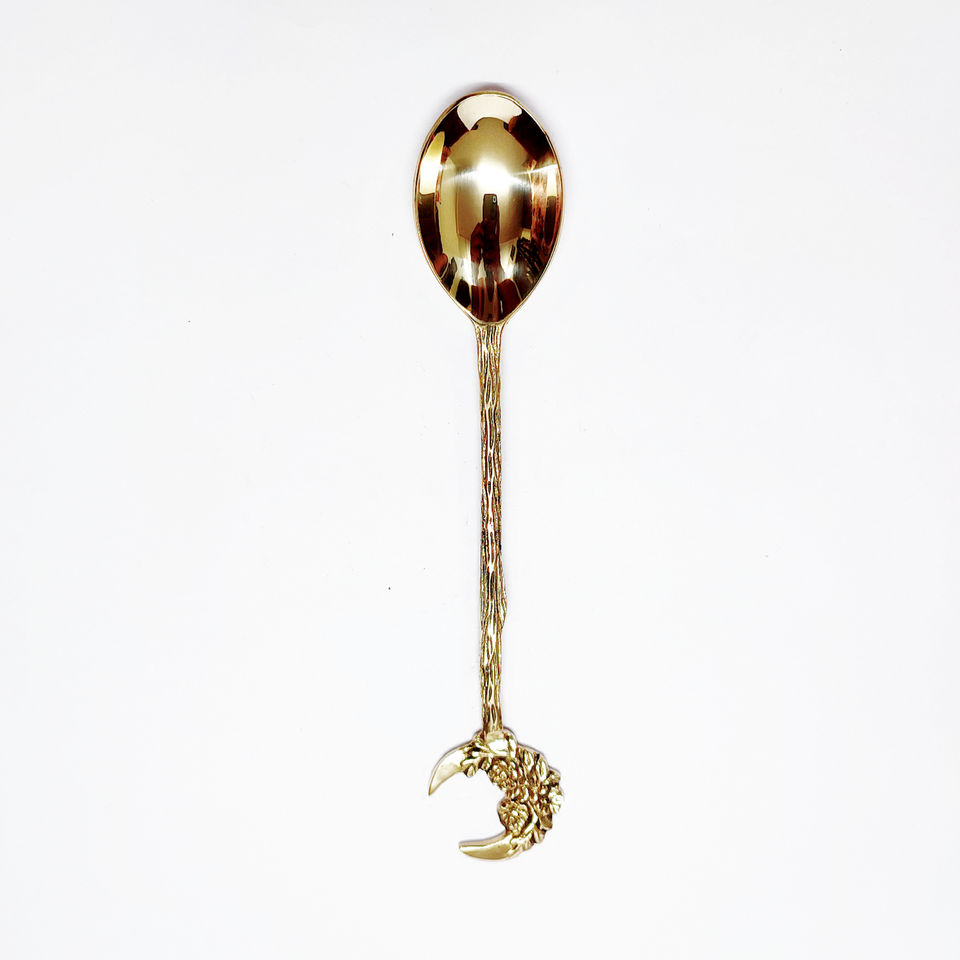 ช้อนรับประทานอาหารทองเหลืองพร้อมเคลือบเงาสำหรับใช้ในบ้านและบนโต๊ะช้อนรับประทานอาหารแบบแฮนด์เมดสำหรับเครื่องครัวใหม่ดีไซน์ดวงจันทร์