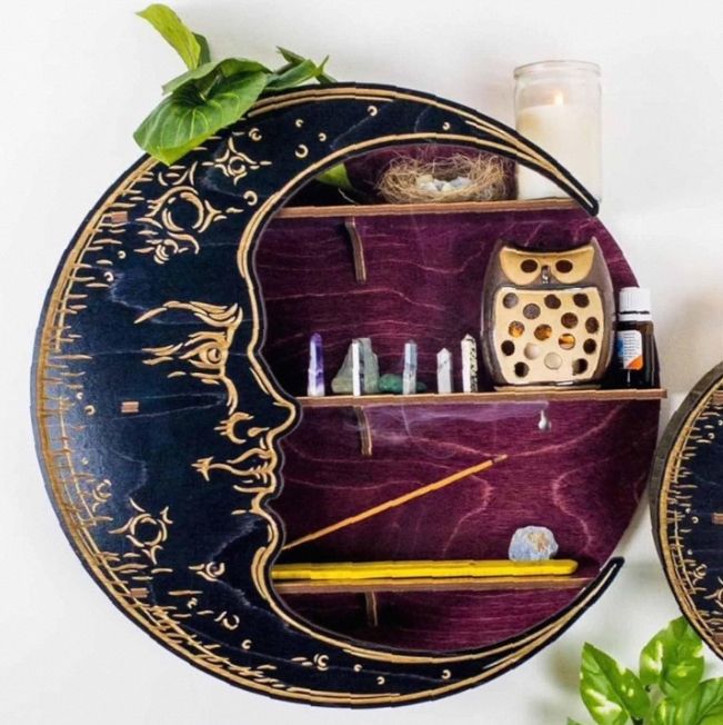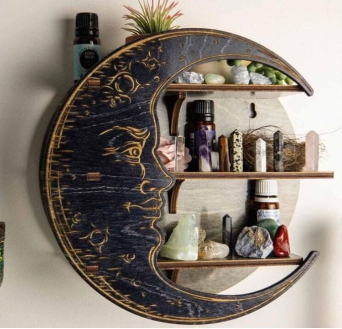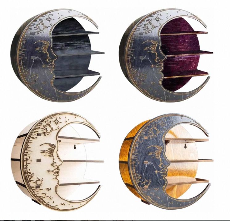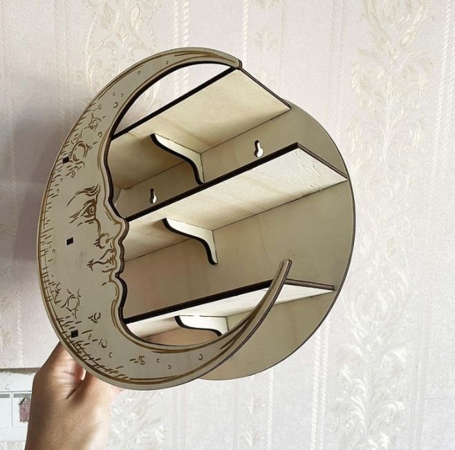 ชั้นเก็บของทำจากไม้รูปพระจันทร์ใหม่แท่นโชว์คริสตัลติดผนังสำหรับห้องนั่งเล่นการตกแต่งที่หรูหรา