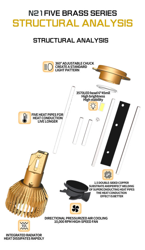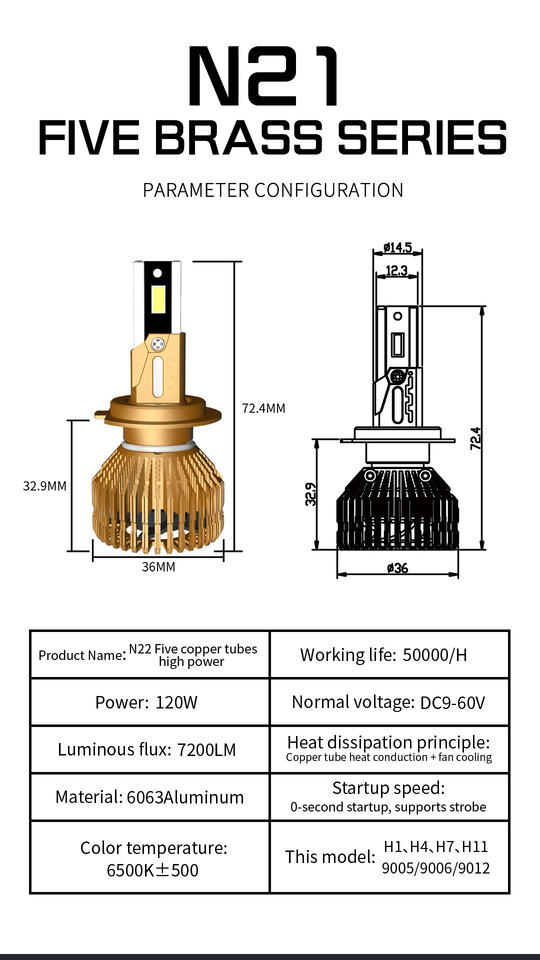 H4ส่องกลางคืน N21ใหม่ไฟหน้า LED 12V ขนาด120W 7200LM 6500K สีคูลท | อะลูมิเนียมการบินกันน้ำ IP-68สว่างเป็นพิเศษ