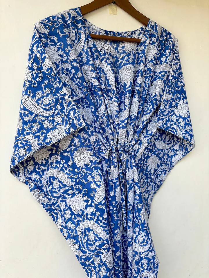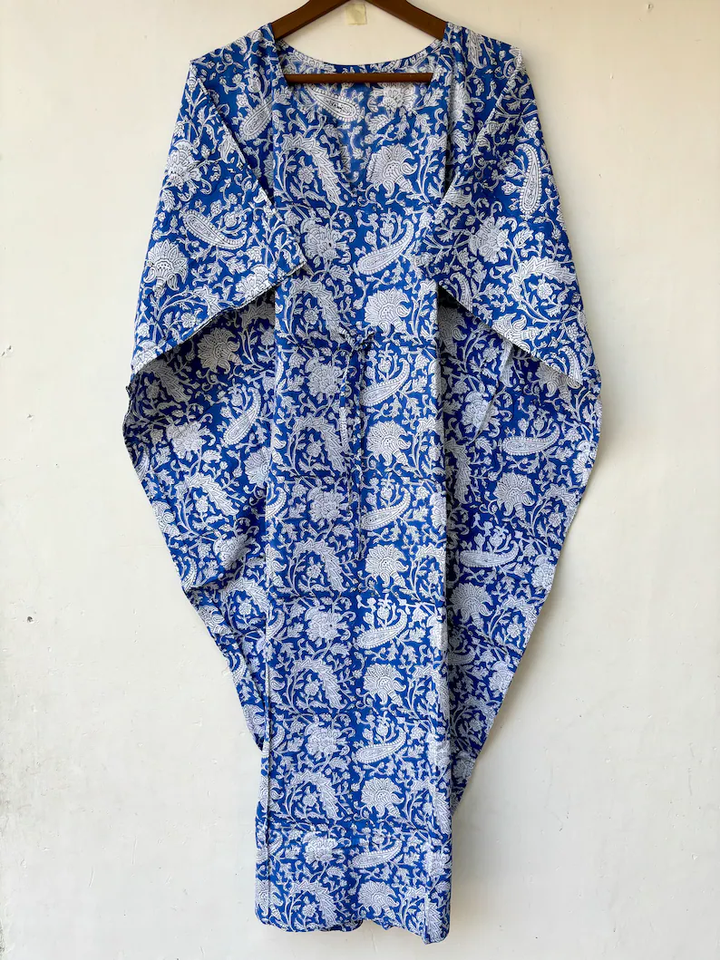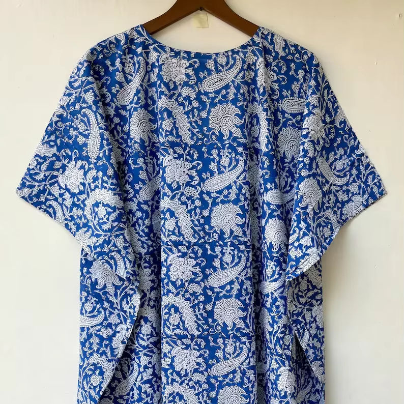 ชุดเดรสยาวพิมพ์ลายสัตว์ คอวี แขนสั้น ผูกเชือก ทรงปล่อยชาย ผ้าฝ้ายอินเดีย 100% แต่งลูกไม้ สำหรับฤดูร้อน ยี่ห้อ New Naaz Textile สำหรับผู้หญิง