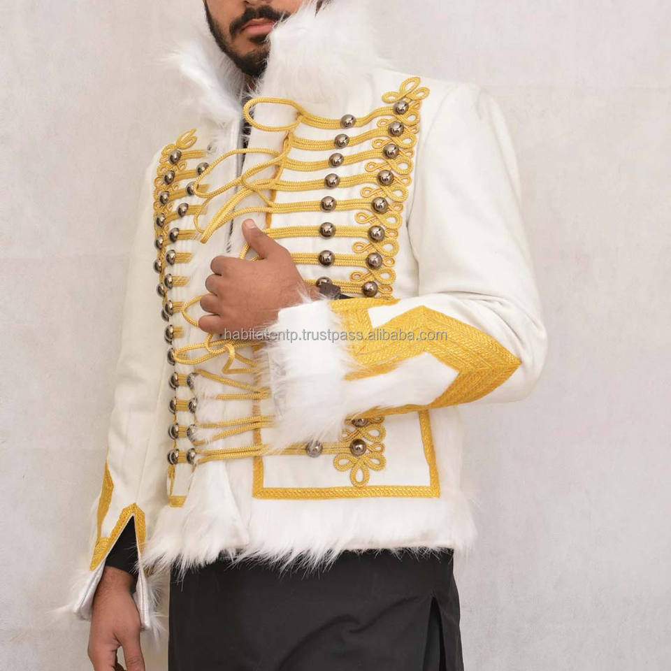 ใหม่ Napoleon Jimi Hendrix แจ็กเก็ตขนเฟอร์แฮนด์เมดสีขาว