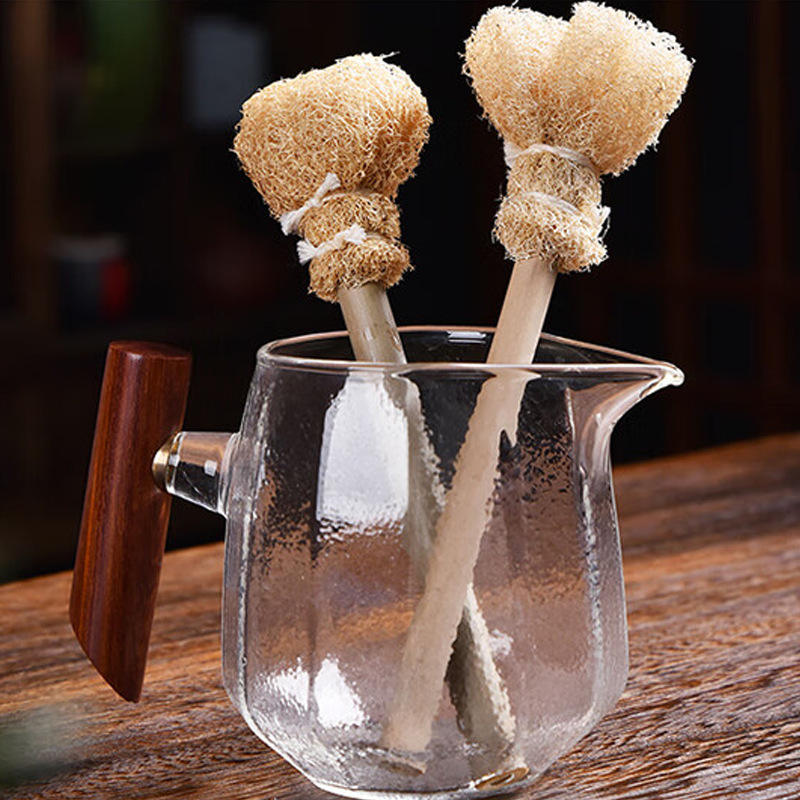 แก้วใยบวบธรรมชาติแบบใหม่พร้อมด้ามจับไม้เนื้อแข็ง แปรงล้างขวดนม ที่กรองชา ชุดชงชาแบบกังฟู - ช่วยกระจายความร้อนให้กับแก้วได้อย่างสม่ำเสมอ