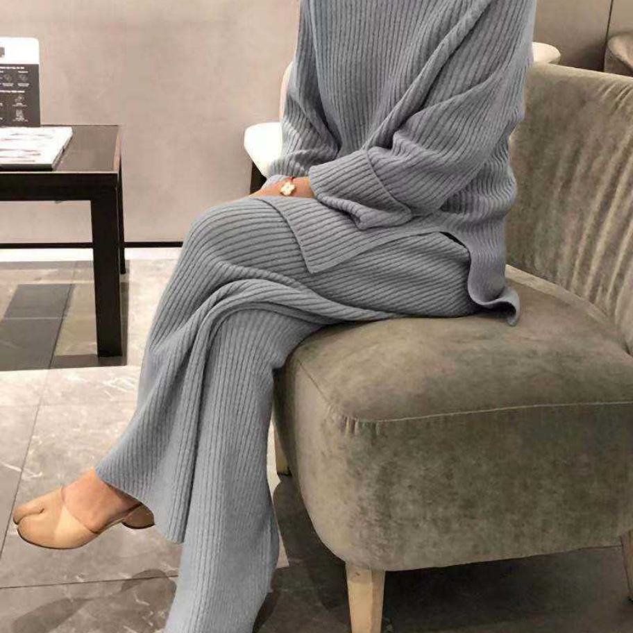 New New Arrival Winter Women Solid Loose Casual Long Sleeve Knit Sweater Top and Pants Set Knit Two Piece Sweater Set