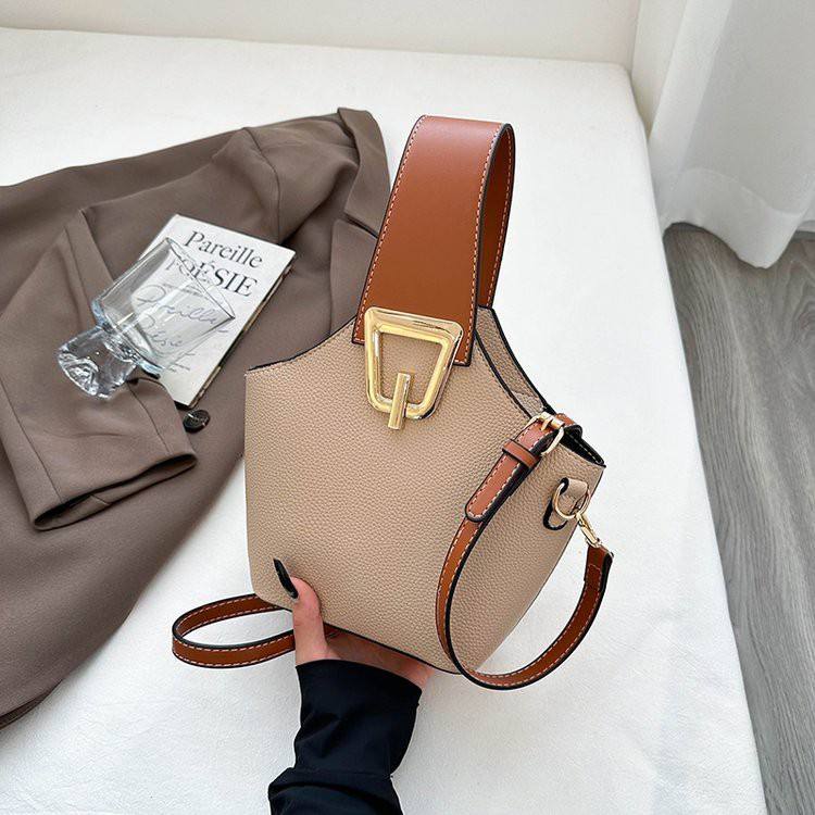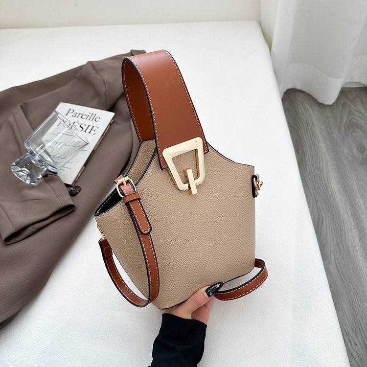 กระเป๋าสะพายข้างผู้หญิง ดีไซน์ใหม่ทันสมัย วัสดุ PU ปิดด้วยหัวเข็มขัด จุของได้เยอะ สไตล์ลำลอง เรียบง่าย สีตัดกัน น้ำหนักเบา
