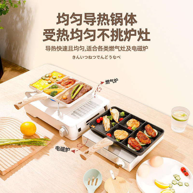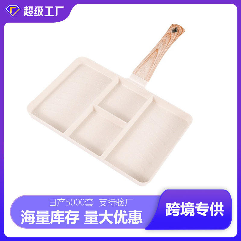 กระทะเหล็กเคลือบหินไมแฟนแบบใหม่ รูปทรงสี่เหลี่ยมผืนผ้า มีสี่ช่องสำหรับทอดไข่และสเต็ก ใช้งานได้หลากหลาย ทำความสะอาดง่าย