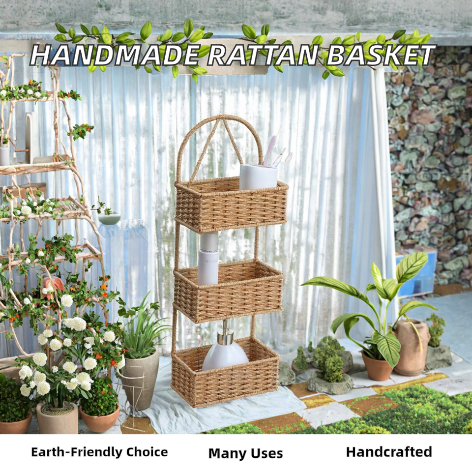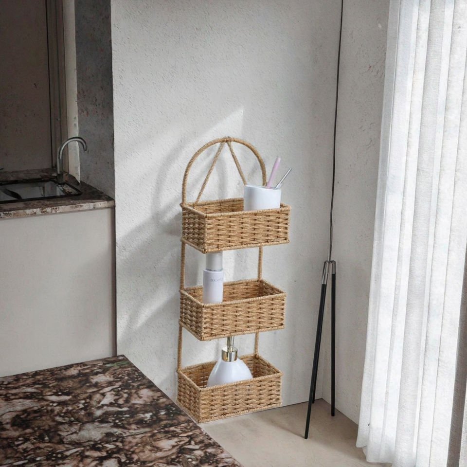 ตะกร้าเก็บของแขวน 3 ชั้น ทรงสี่เหลี่ยมผืนผ้า สไตล์นอร์ดิกใหม่ ทำจากเหล็กและหวาย PP ทอมือ เป็นมิตรกับสิ่งแวดล้อม ใช้งานได้หลากหลาย เหมาะสำหรับตกแต่งบ้าน