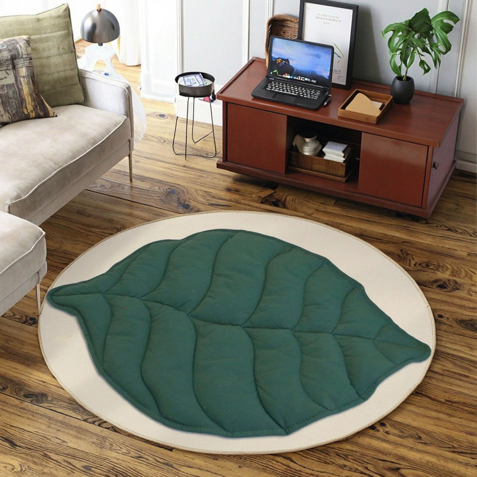 เสื่อเล่นเด็กทอจากผ้าฝ้ายสีเขียวสไตล์นอร์ดิกใหม่ ซักได้ ความหนา 3 มม.-7 มม. เหมาะสำหรับห้องนอนเด็กและบ้าน