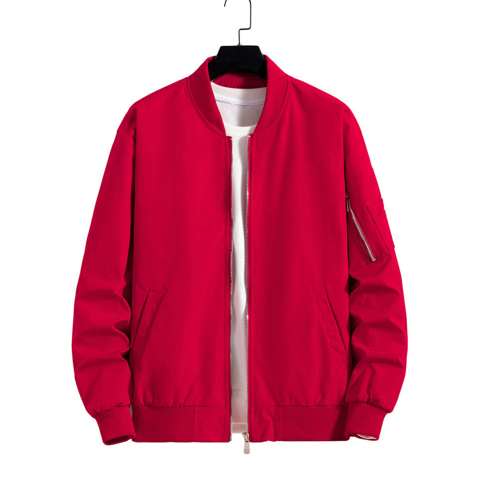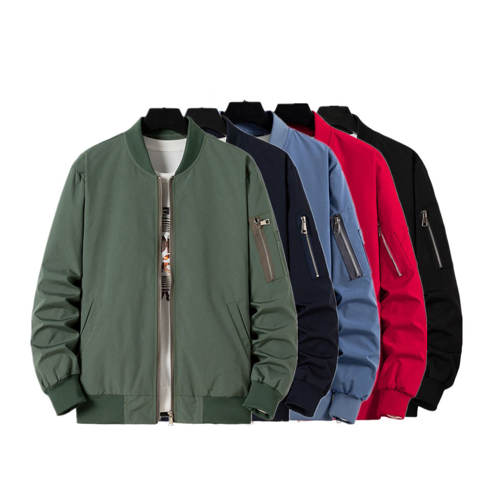 เสื้อแจ็กเก็ตบอมเบอร์ซาตินสำหรับผู้ชาย, เสื้อแจ็กเก็ตบอมเบอร์แขนยาวกระเป๋าข้างมีลายปักดีไซน์ใหม่
