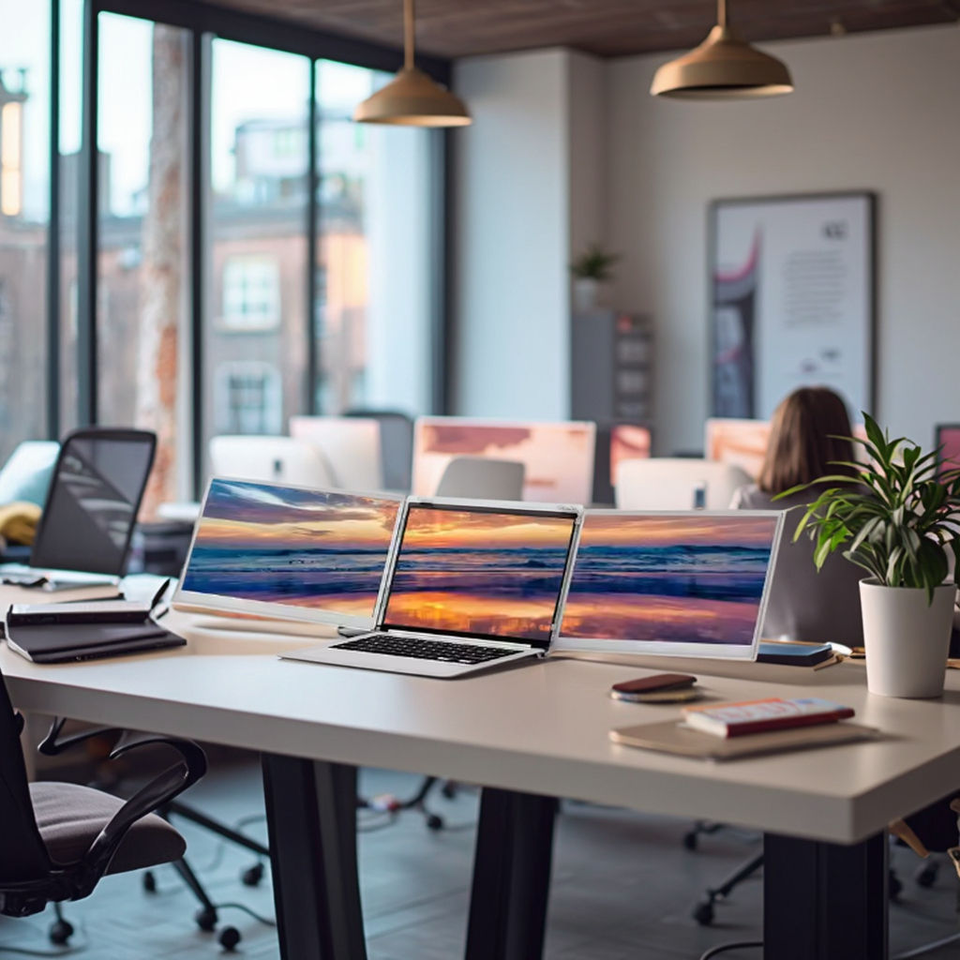 จอภาพพกพาแบบคู่อินฟราเรดขนาด 15.6 นิ้ว 16:9 รุ่นใหม่ ODM OEM พร้อมจอเสริมสามจอ ความละเอียด 3840x2160 พอร์ตเชื่อมต่อ USB สำหรับธุรกิจ
